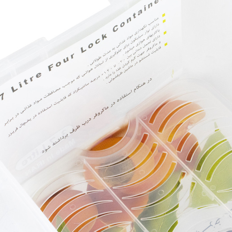- 3.7 لیتری - استفاده در ماکروفر بدون درب آن - دارای تحمل دمایی از 20- تا 120+ درجه سانتی گراد - دارای نوار سیلیکون برای جلوگیری از تبادل هوا