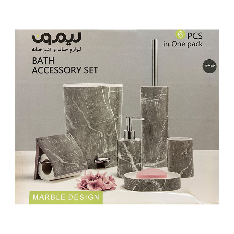 ست سرویس بهداشتی 6 پارچه لیمون مدل ماربل طرح سنگی