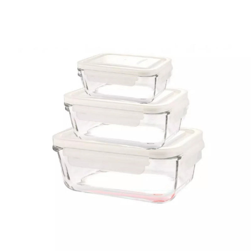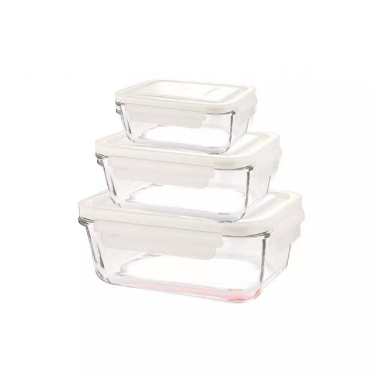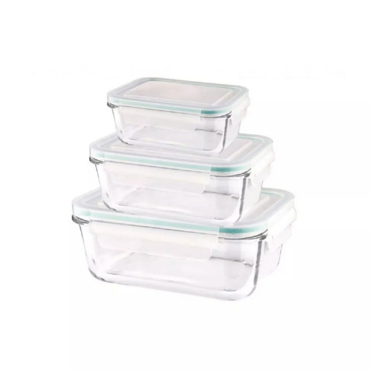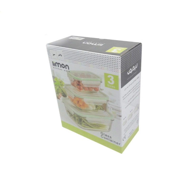 . ست ظرف شیشه ای مستطیل لیمون کد 1806 مجموعه 3 عددی از جنس شیشه ی حرارت دیده و درجه یک تهیه شده است و به همین دلیل برای نگهداری از انواع غذا مناسب می باشد. با به کارگیری این محصول می توانید انواع غذا را برای مدت زمان طولانی تری نگهداری کنید و با پلمپ کردن درب آن احتمال ورود هیچگونه ذره و آلودگی به درون مواد غذایی وجود نخواهد داشت.