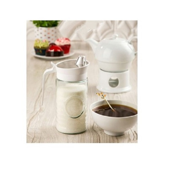 سایر توضیحات: ظرفیت 400 میلی لیتر، تولید شده از جنس اکریلیک، دارای درب با اهرم فشاری پلاستیکی متصل به دسته، مناسب برای نگهداری شکر، روغن، سرکه، آبلیمو.