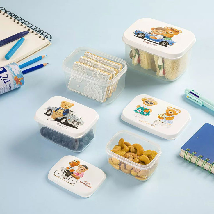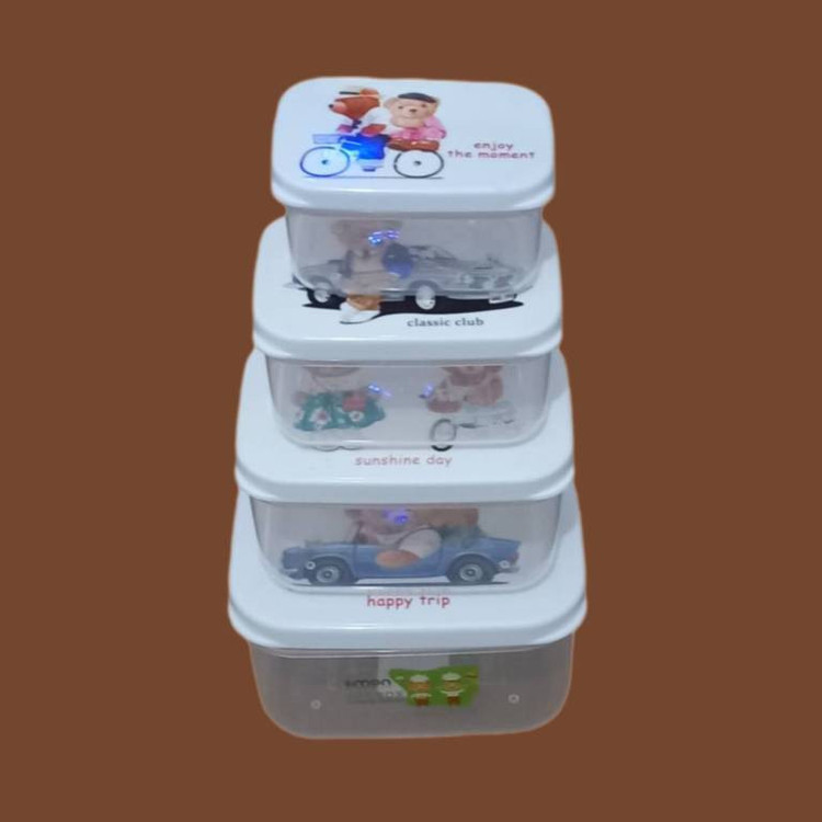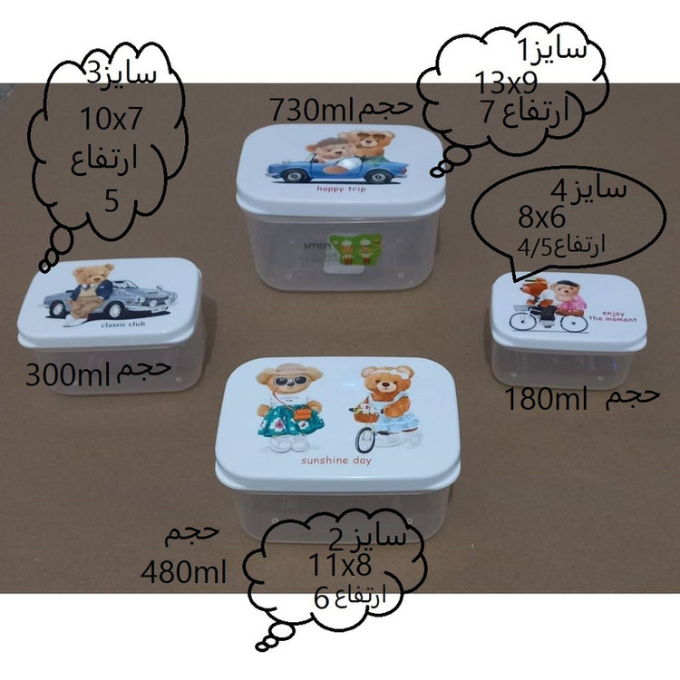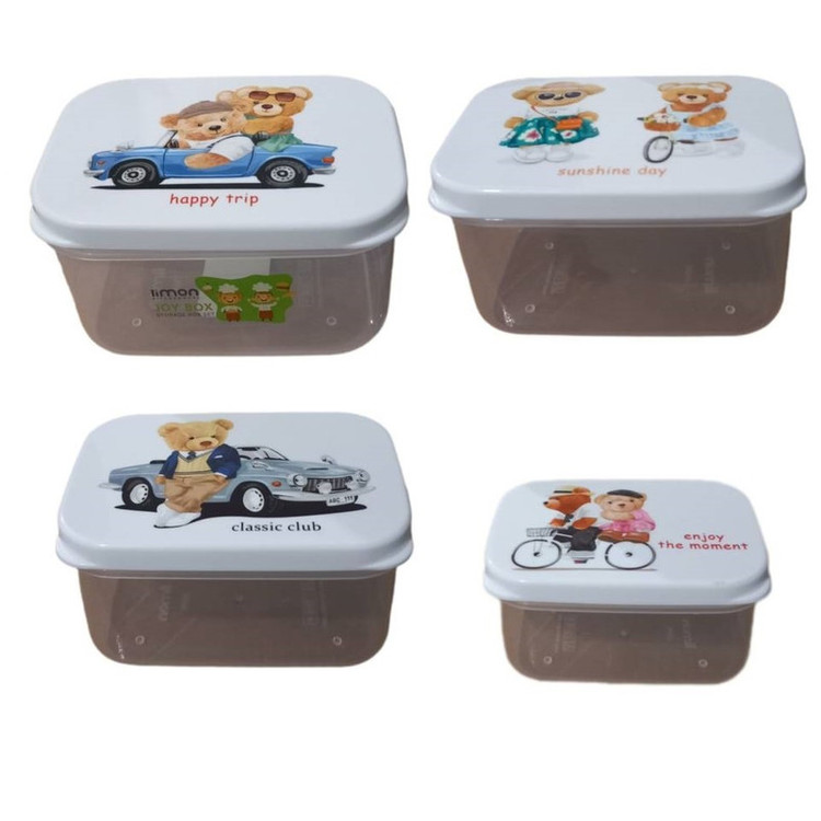 ست ظرف غذای مستطیل چاپدار لیمون مجموعه 4 عددی / حجم ظرفها 730 ، 480 ،300 ، 180 میلی لیتر / قابل استفاده در فریزر و ماکوویو