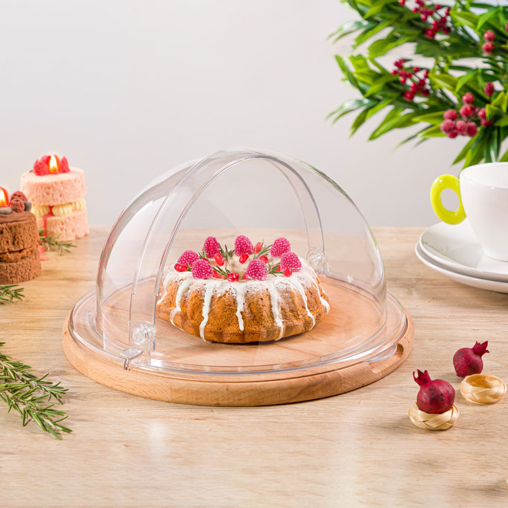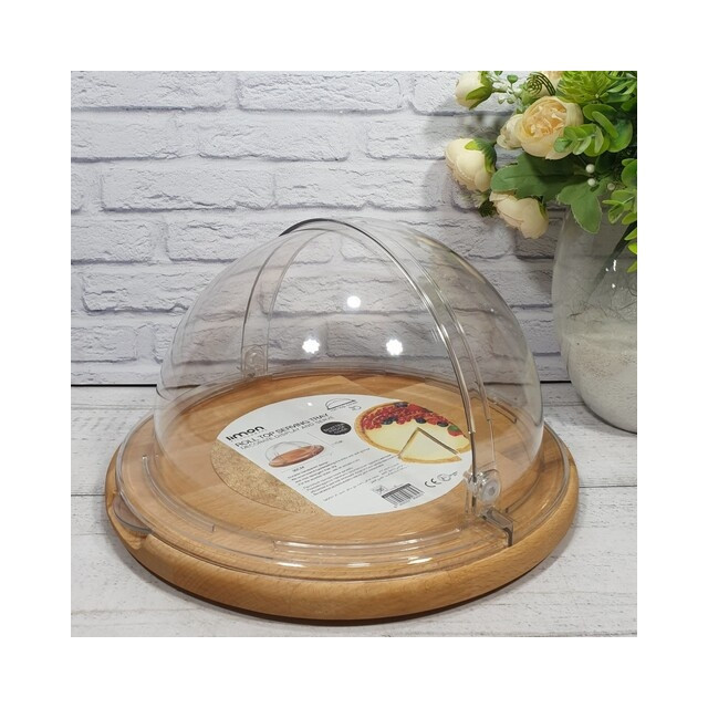 ظرف سرو کیک پایه چوبی لیمون، از جنس اکریلیک و کفی آن چوبی است. این محصول مناسب سرو و نگهداری انواع کیک، نان و … می باشد. درب این ظرف به صورت کشویی باز می شود.
