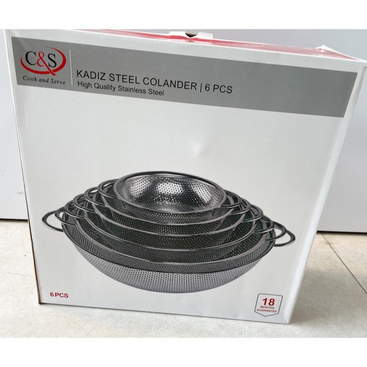 سایر توضیحات: ابعاد و وزن وارد شده مربوط به بسته بندی میباشد ، سایز های آبکش ها در اسلاید تصویر به تفکیک درج شده ، دسته و پایه محکم ، ضخیم و درجه 1