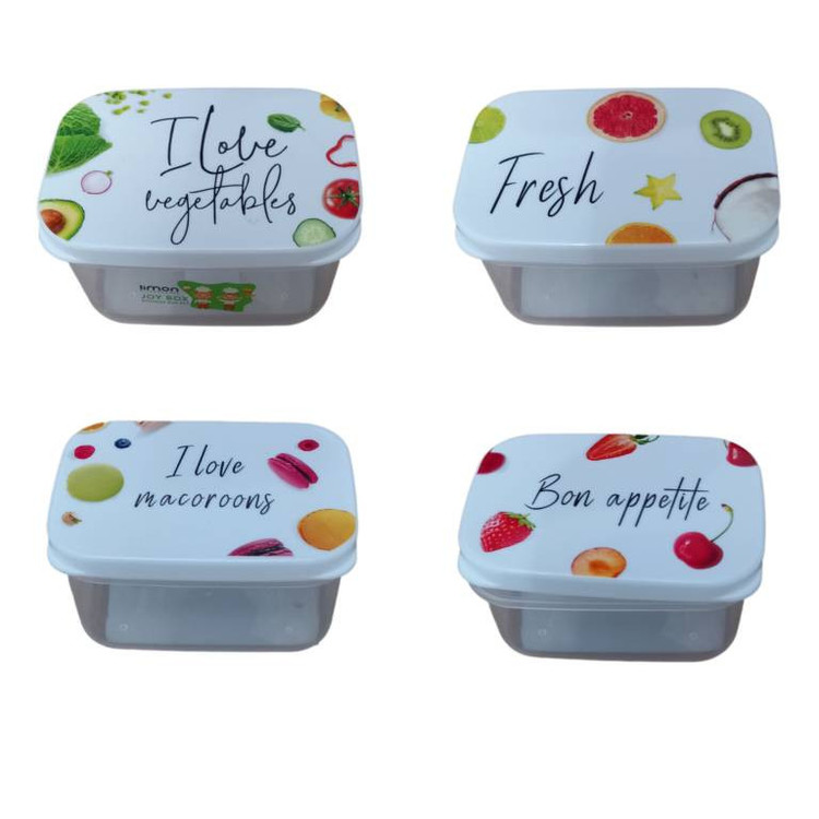 ست ظرف غذای مستطیل چاپدار لیمون مجموعه 4 عددی / حجم ظرفها 730 ، 480 ،300 ، 180 میلی لیتر / قابل استفاده در فریزر و ماکوویو