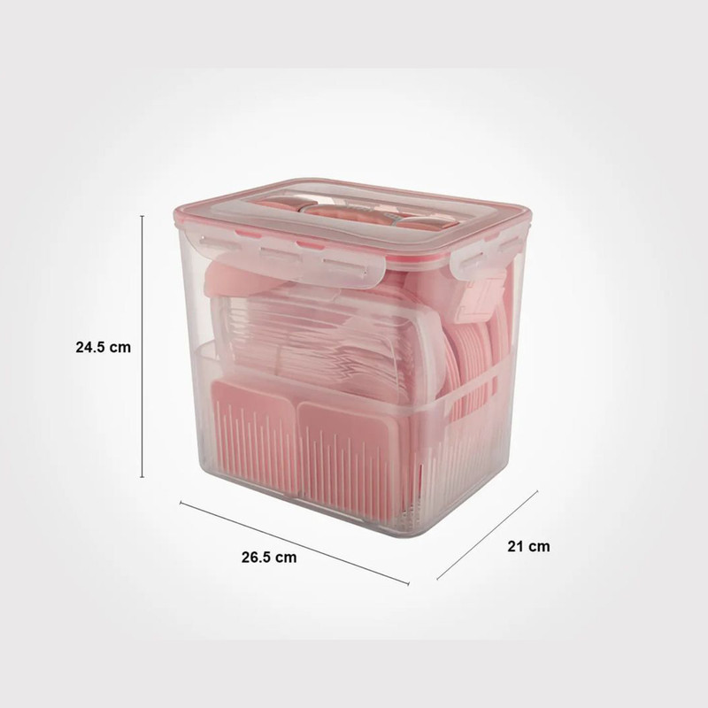درهمه مسافرت ها این مهم است که شما ظرفهایی را با خود حمل کنید که هم سبک بوده و هم اینکه جای کمتری را بگیرد وهمچنین به راحتی نشکند. این ست پیک نیک که از جنس بسیار مرغوب و طراحی خوب برخوردار است این نیازرا پاسخ می دهد و شما میتوانید با خیالی آسوده و بدون نگرانی از به همراه داشتن ظروف مورد نیاز، از گردش و سفر لذت ببرید ودیگر لازم نیست فهرستی از ظروف موردنیاز تهیه کنید و تا دقیقهی آخر همهی موارد را چک کرده و نگران شکستن یا خراب شدن لوازم آشپزخانهتان باشید. کافی است سبد پیکنیک و سفر «لیمون» مدل 6 نفره را همراه خود ویا داخل خودرو خود داشته باشید تا به همه نیازهای شما پاسخ دهد.این سرویس 6 نفره شامل اقلام زیر است :1 عدد سینی2 عدد کفگیر6 عدد قاشق، چنگال، چاقو6 عدد بشقاب، پیش دستی، بشقاب سوپ خوری، پیاله3 عدد ظرف سرو6 عدد لیوان1 عدد ظرف درب دار1 عدد نمکدان و فلفل پاش