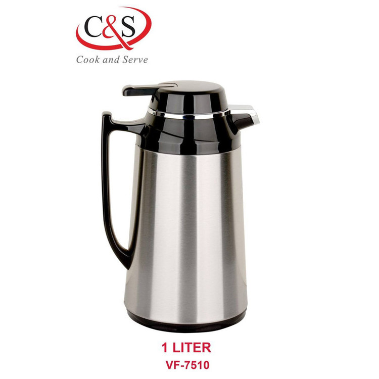 برند C&S از برندهای معتبر ایرانی در زمینه واردات، طراحی و تولید ابزار و وسائل آشپزخانه بوده و سالیان طولانی در این مسیر قدم برداشته است. محصولات این برند از کیفیت متوسط و قابل قبولی برخوردار بوده و با قیمتی مناسب در مقایسه با کالاهای هم رده برخوردارند.فلاسک های مدل TACOMA از جمله محصولات کاربردی و پر طرفدار این برند می باشند که در 4 ظرفیت تولید و عرضه می شوند. کد 7510 از این سری ظرفیتی معادل یک لیتر داشته و مناسب استفاده در منزل، مسافرت و به هنگام برگزاری مهمانی می باشد. بدنه این فلاسک از جنس استیل ضد زنگ مات با خاصیت عدم جذب اثر انگشت و مخزن داخلی آن از شیشه ای ساخته شده است. درب این فلاسک به صورت پیچی به بدنه متصل شده و برای تخلیه دارای یک اهرم فشاری بوده و به راحتی قابل استفاده است. این فلاسک قابلیت نگهداری سرما و گرما را دارا می باشد.
