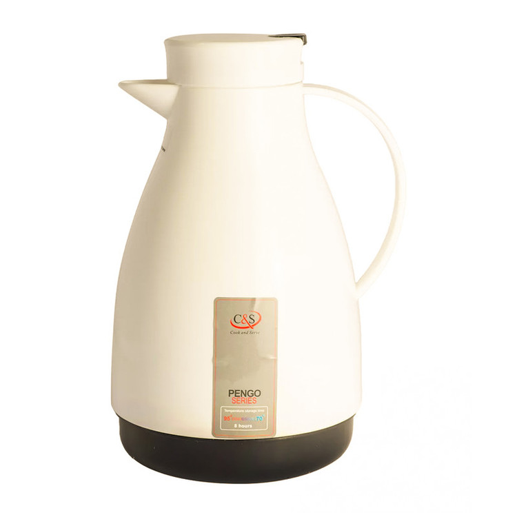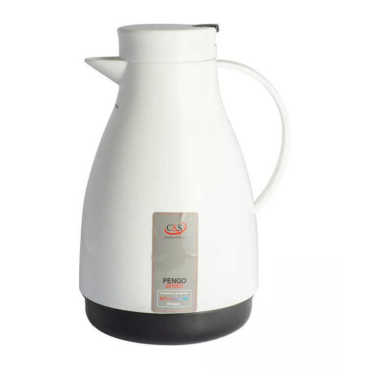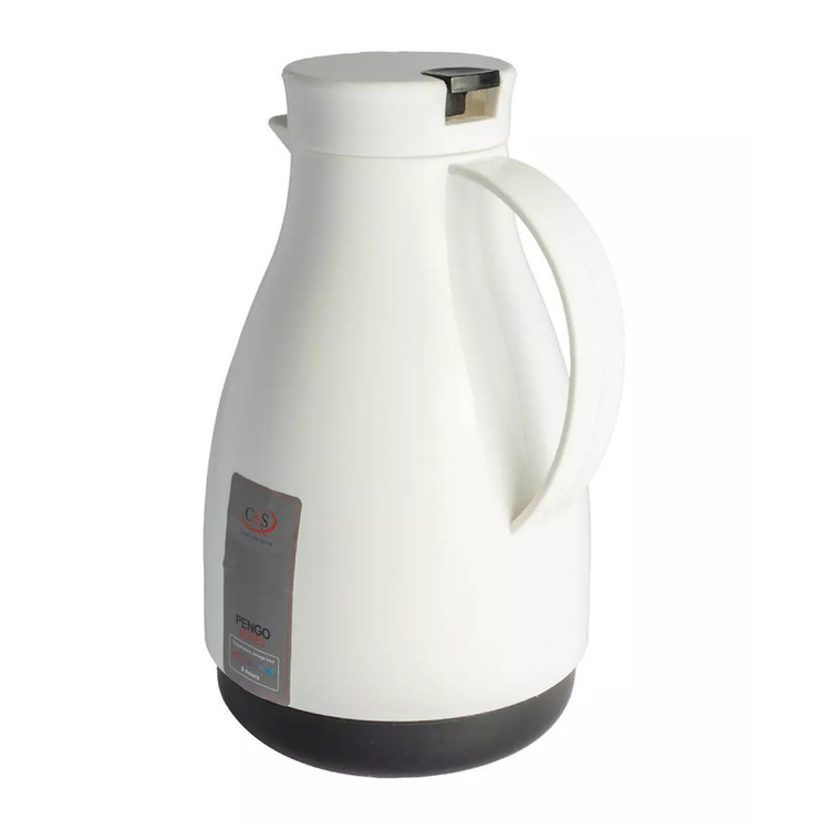 برند C&S از برندهای معتبر ایرانی در زمینه واردات، طراحی و تولید ابزار و وسائل آشپزخانه بوده و سالیان طولانی در این مسیر قدم برداشته است. محصولات این برند از کیفیت متوسط و قابل قبولی برخوردار بوده و با قیمتی مناسب در مقایسه با کالاهای هم رده برخوردارند.فلاسک های مدل PENGO ابزاری مناسب جهت استفاده در منزل، مسافرت و به هنگام برگزاری مهمانی می باشند. این فلاسکها از بدنه ای پلاستیکی براق و با کیفیت و مخزنی شیشه ای ساخته شده اند. برای تخلیه محتویات یک شاسی فشاری روی درب آنها که به صورت پیچی به بدنه وصل می شود قرار گرفته و به راحتی قابل استفاده هستند.مخزن داخلی این فلاسک ها از شیشه ساخته شده و قابلیت نگهداری سرما و گرما را دارا می باشد و در ظرفیت و رنگهای مختلف عرضه می شوند.