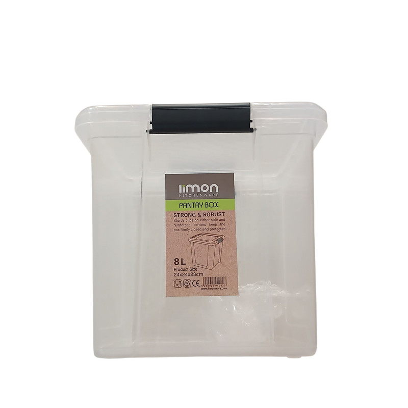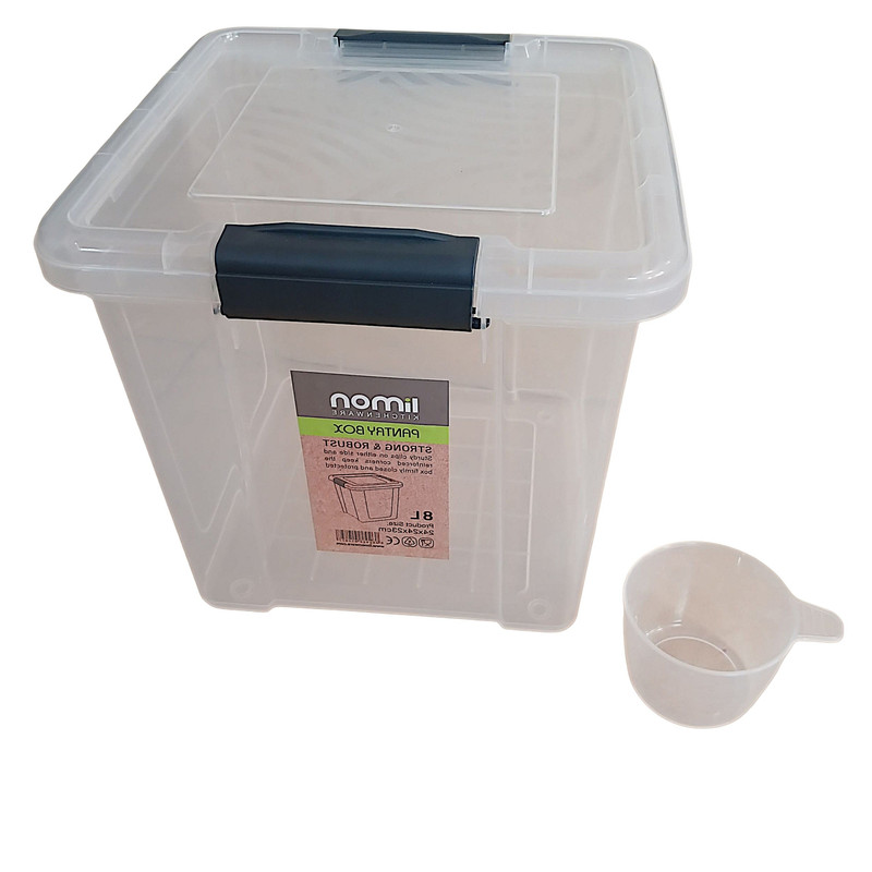 این ظرف مناسب نگهداری برنج و حبوبات است ، درب آن فاقد واشر میباشد و دارای دوعدد قفل ساده است . بدنهی ظرف کمی مات است و محصول دارای پیمانه نیز میباشد . حجم این ظرف ۸ لیتر است که برای خانواده ۲ تا ۴ نفره مناسب میباشد . جنس پلاستیک و لبه ها محکم بوده و به راحتی شکسته نمیشود