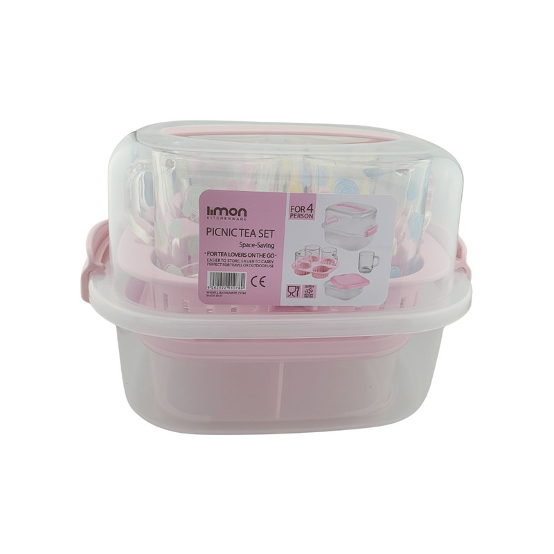 ست چایخوری 4 نفره مسافرتی لیمون 2441: شامل :4 عدد لیوان، 1 عدد سینی مخصوص، 1 عدد ظرف 3 قسمتی جهت قراردادن قند و چای غیره// طرح روی لیوان های خالخالی است.