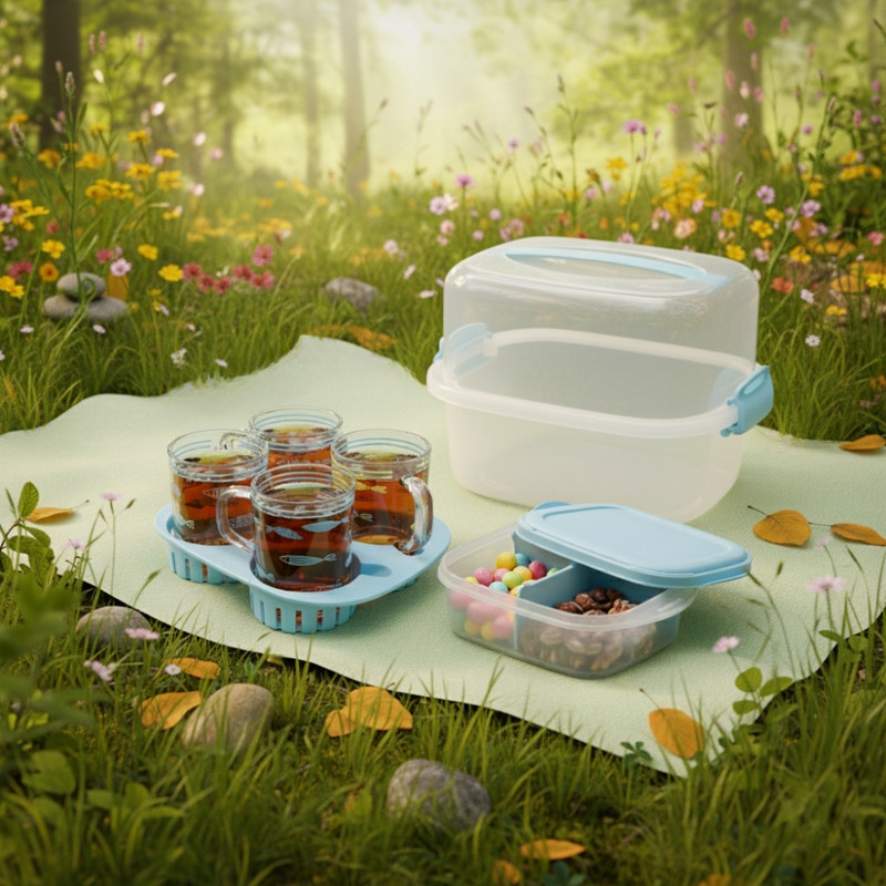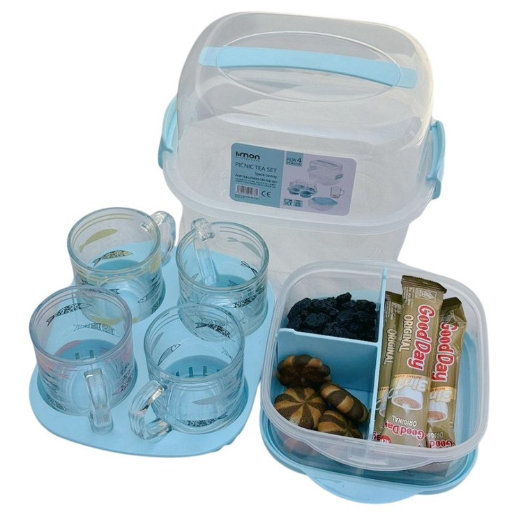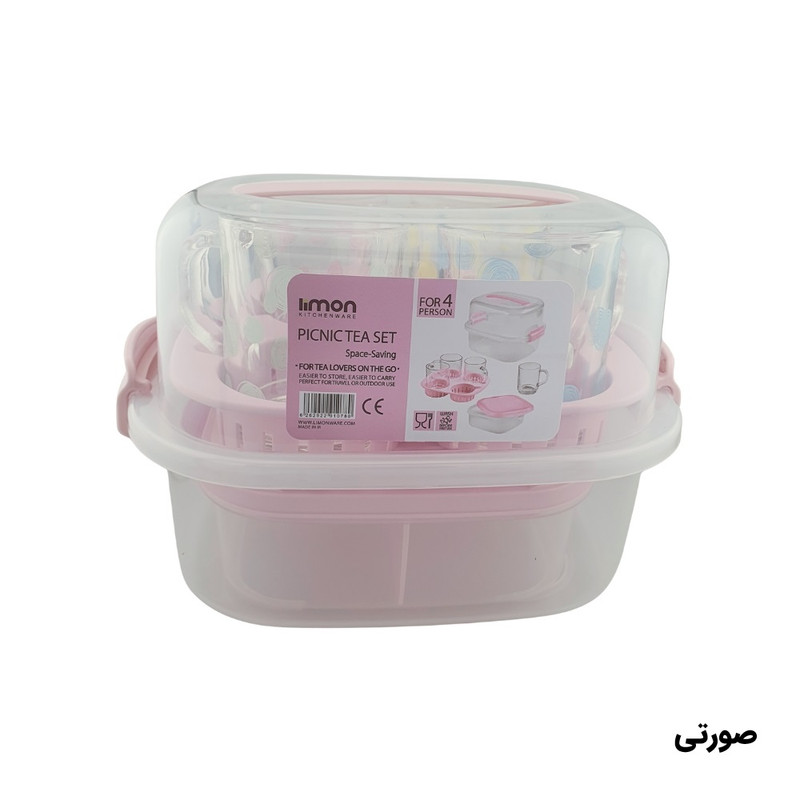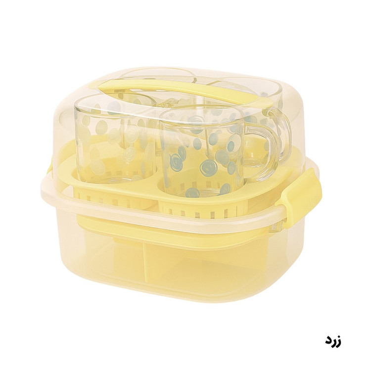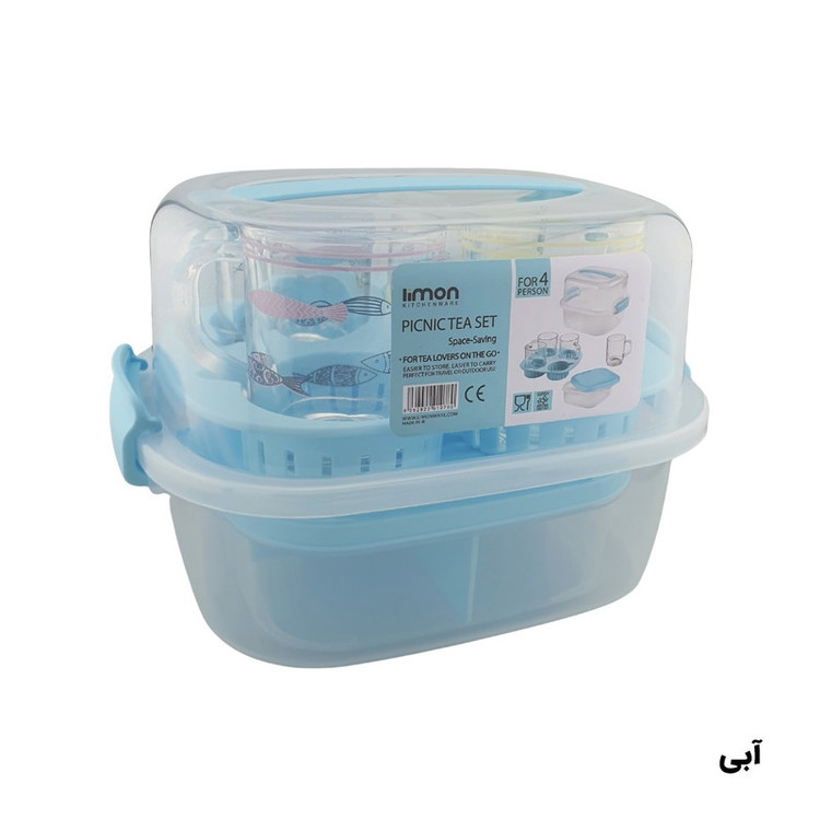 تعداد: یک عدد // همهچیز برای پیکنیک و مهمانی در یک بسته بندی شیک // با این ست سرو چای، پذیراییتان چه در سفر و چه حتی در محل کار همیشه مرتب، شیک و آماده است. درب محکم با دستهی حمل، ظرف سهخانه برای جدا نگهداشتن چای یا قهوه ، قند و یا هر تنقلاتی که شما بخواهید سینی نگهدارنده و 4 لیوان شفاف باطرح هایی در 4 رنگ که هر رنگ برای یک نفر راحت، کاربردی و دوستداشتنی! پک کامل: یک ظرف دربدار با قفل، ظرف تقسیمشده، سینی نگهدارنده لیوان و 4 لیوان شفاف. حمل آسان: دسته و قفلهای فشاری برای انتقال بدون نگرانی از ریختن. نظمدهی هوشمند: بخشهای مجزا برای غذاهای مختلف — بدون مزهپذیری یا بهمزدگی. مناسب برای همهجا طراحی شیک و رنگ های پاستیلی که سفره و سفرهایتان را زیبا میکند. ست چایخوری 4 نفره مسافرتی لیمون 2441: شامل :4 عدد لیوان، 1 عدد سینی مخصوص، 1 عدد ظرف 3 قسمتی جهت قراردادن قند و چای غیره... // لیوان های ست رنگ سبز طرح گل، لیوان های ست رنگ آبی طرح ماهی و لیوان های ست رنگ صورتی و زرد خالخالی هستند.