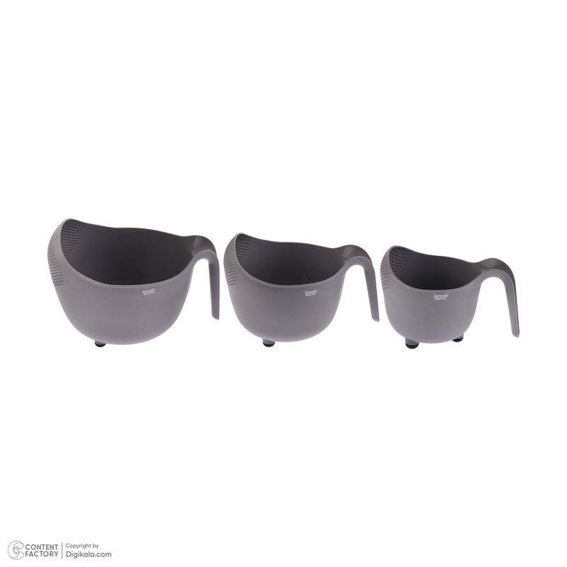 3 عدد ظرف آبکش. ظرف بزرگ با ابعاد: 28x23x20 سانتی متر- ظرف متوسط با ابعاد:24x19x17 سانتی متر - ظرف کوچک با ابعاد 20x14x14 سانتی متر