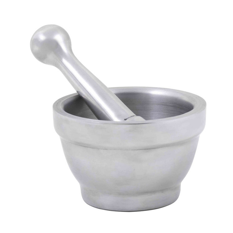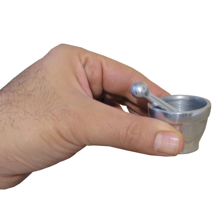 هاون سایز کوچک مناسب زعفران ساخته شده از فلز دارای استاندارد مواد غذایی قطر 4.5 و ارتفاع 3.5 سانتیمتر دسته 6 سانتیمتر شستشو با دست دارای جعبه مشابه تصاویر