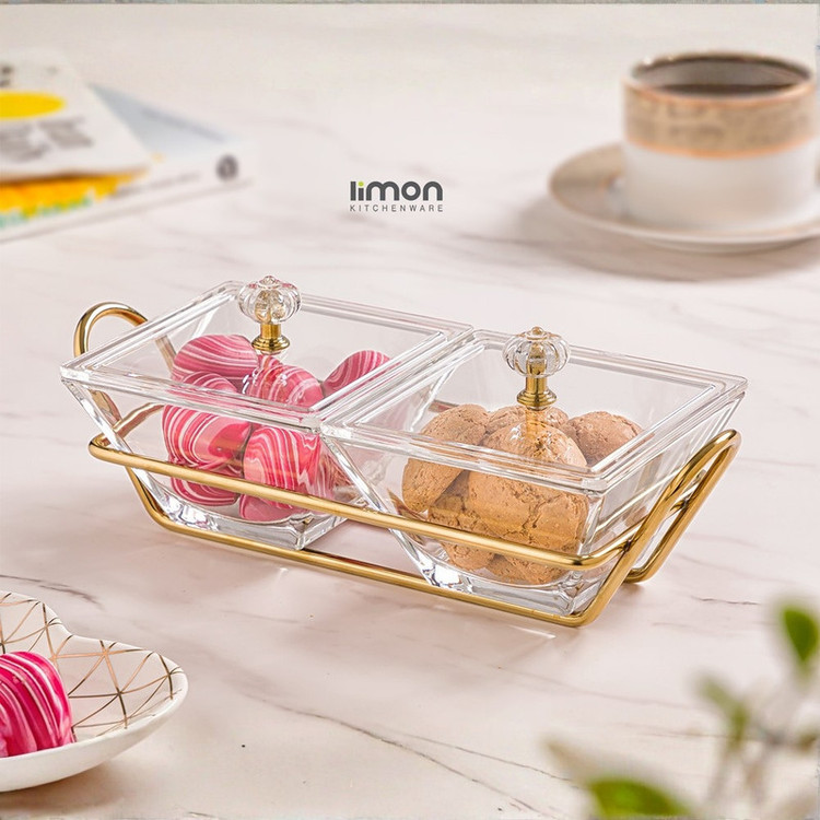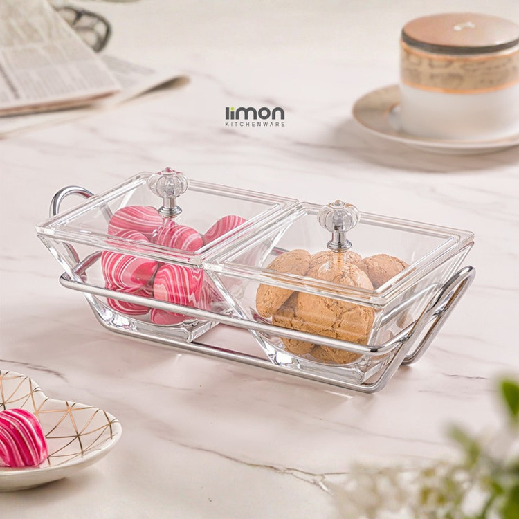 تعداد: یک عدد // اردوخوری لیمون مدل مربع کد FIDOKA-2106 مجموعه 2 عددی به همراه استند بدنه از جنس شیشه، درب از جنس اکرولیک و پایه از جنس فلز میباشد. این اردوخوری زیبا در دو رنگ نقره ای و طلایی تولید میشود.